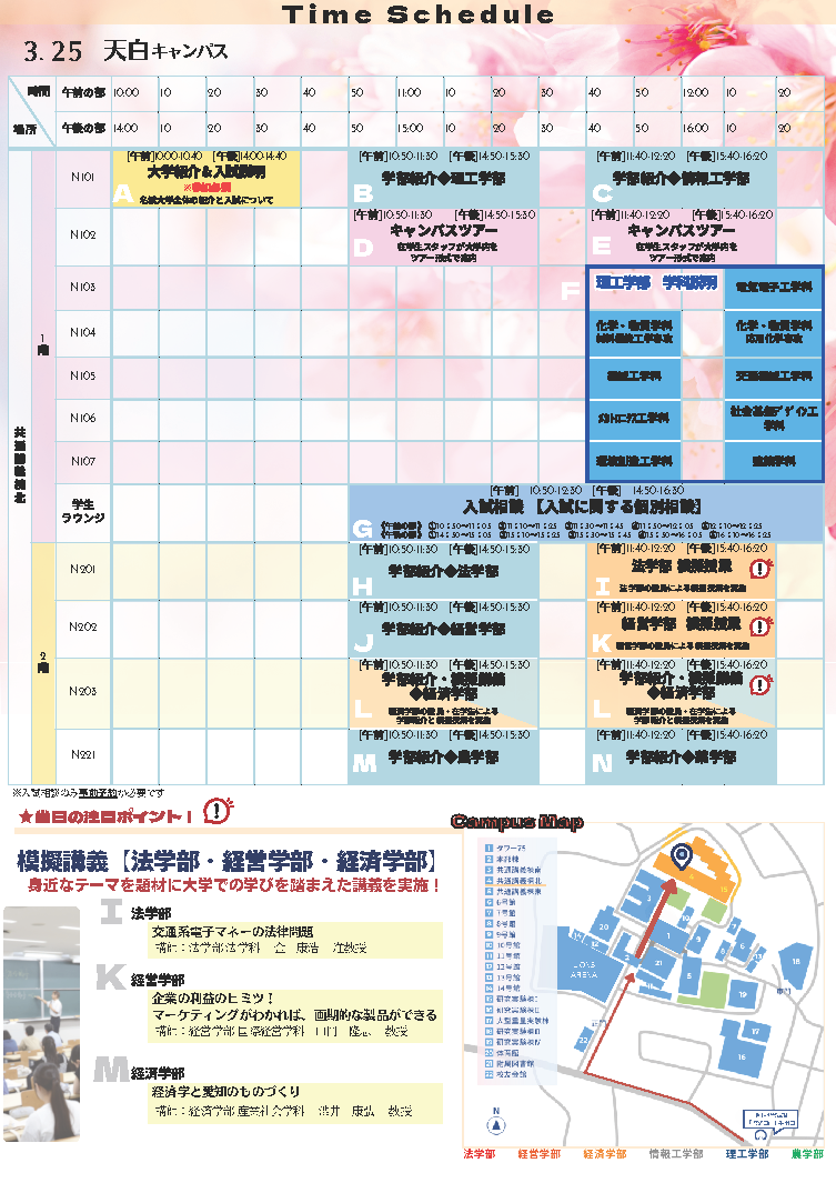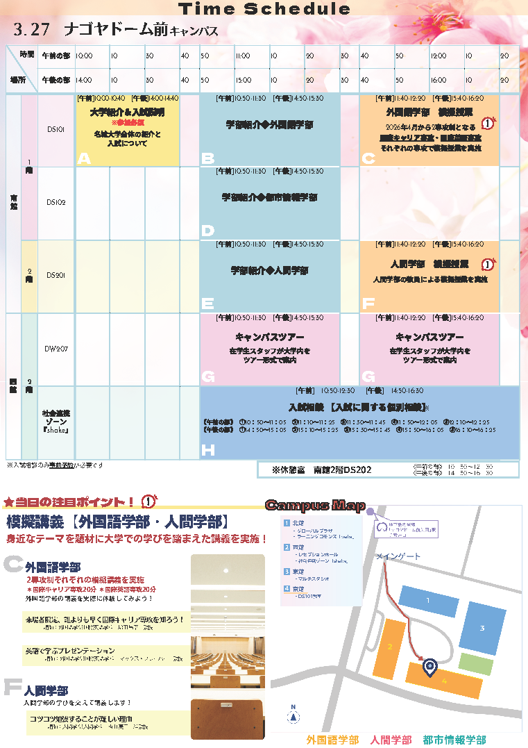 ※両日とも、大学紹介&入試説明(午前の部:10時00分~10時40分、午後の部:14時00分~14時40分)は参加必須です。