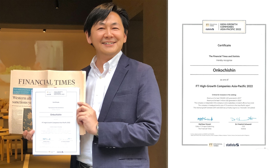 ホテル・旅館のプロデュース及びコンサルティングを手掛ける株式会社温故知新(所在地:東京都新宿区、代表:松山 知樹)はこの度、Financial Times社とStatista社主催の「High Growth Companies Asia-Pacific 2022」アジア太平洋地域における急成長企業ランキングにおいて、ベスト500にランクインいたしました。