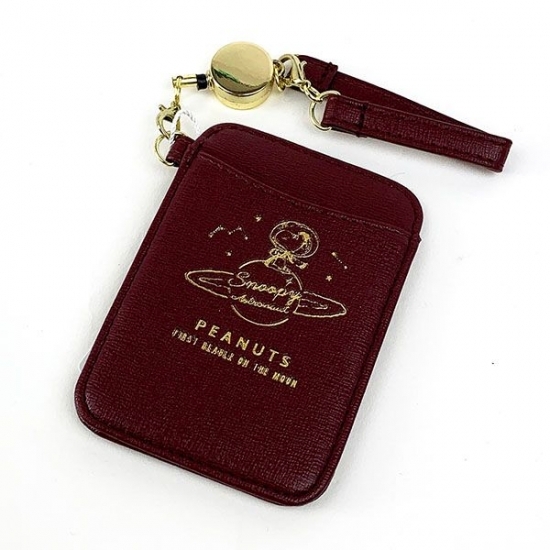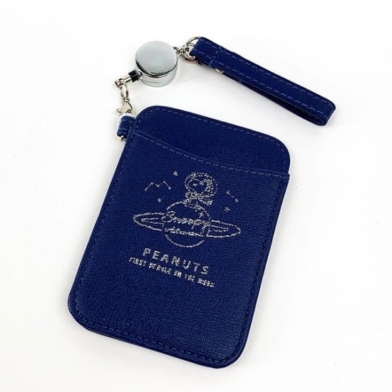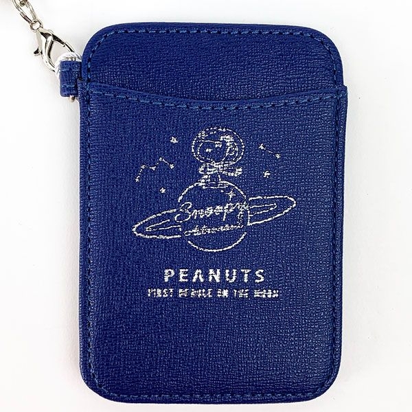 まずは、フラットなパスケースのご案内です。フラットな形が携帯するのにとっても便利♪シックなネイビーカラーにシルバーでデザインされたアストロノーツのスヌーピー♡お馴染みのリール付きで、便利なタイプです。