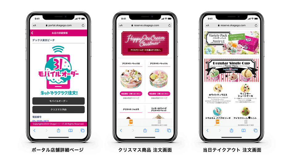 世界最大級のアイスクリーム専門店チェーン「サーティワン アイスクリーム」を日本国内で展開するB-R サーティワン アイスクリーム株式会社(所在:東京都品川区、代表取締役社長:渡辺 裕明、以下「サーティワン アイスクリーム」)のクリスマス商品のネット予約などのシーズン限定キャンペーンおよび当日テイクアウト予約のためのモバイルオーダーシステムとして、Okage株式会社(本社:東京都中央区、代表取締役CEO:内田 善久)が提供する「Okage Go店外版」が採用されました。