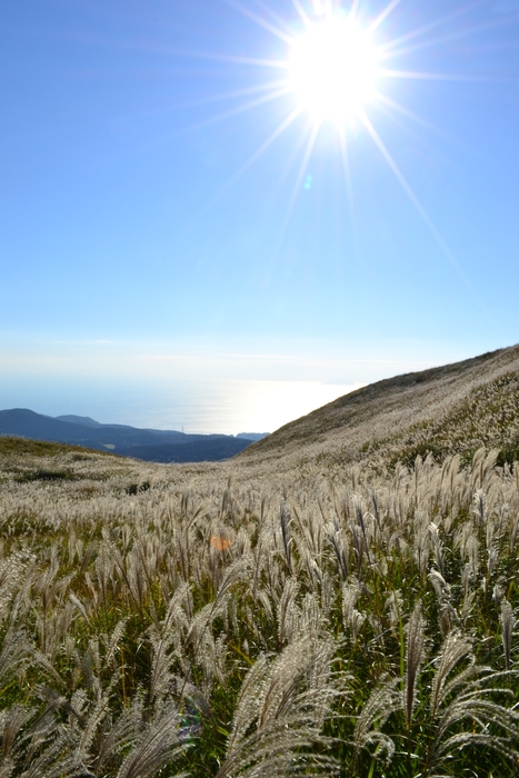 稲取細野高原は、伊豆半島最高峰の天城山脈と、相模灘に浮かぶ伊豆諸島を一望できる最高のロケーションです。ススキは開催期間中に最も美しい黄金色に輝き、来場者に感動的な景色を提供します。