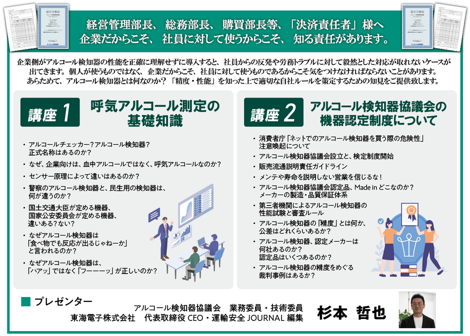 【 呼気アルコール検知器 概論 】セミナーを無料開催いたします。