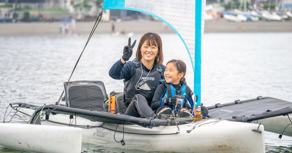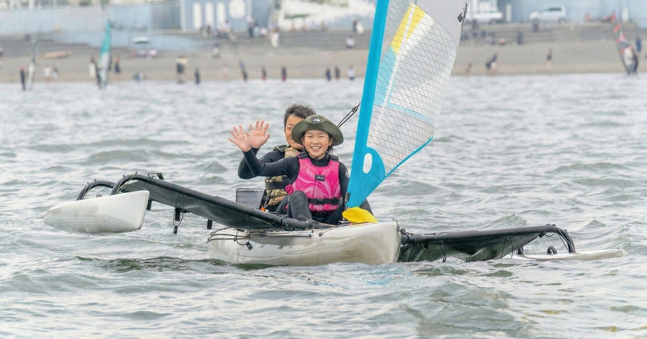本体験会では、抜群の安定感を誇る二人乗りヨット「HOBIE(ホビー)アイランド」を採用。エンジン音のない静かな海の上で、風の力だけで進むヨットならではの爽快感を、お子様が手軽に、かつ安全に体験できるプログラムです。