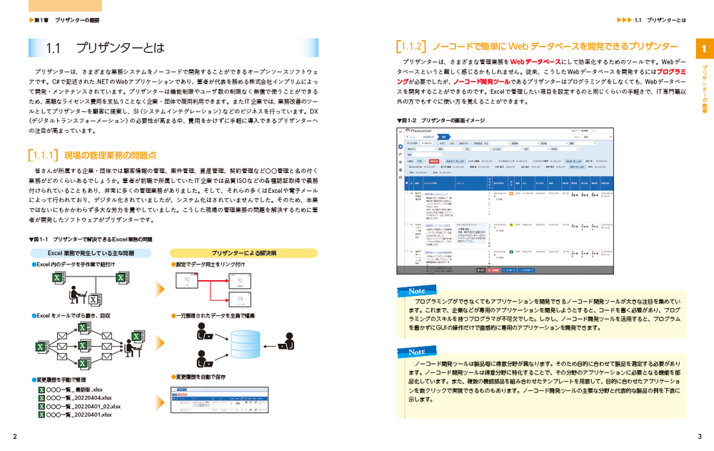 本書は、プリザンターの開発者である株式会社インプリム 代表取締役の内田 太志が執筆した、入門者向けの解説書です。導入からアプリ開発、運用のポイントまでを豊富な画面イメージとともに体系的に解説しており、情報システム担当者、システムエンジニア、SIer の皆様にとって最適なガイドとなります。