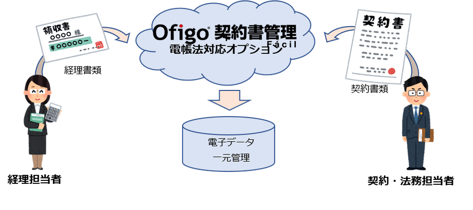 Ofigo契約書管理では、この度提供開始する「電帳法対応オプション」の適用により、電帳法に対応した国税関係帳簿書類の保管も可能となりました。
