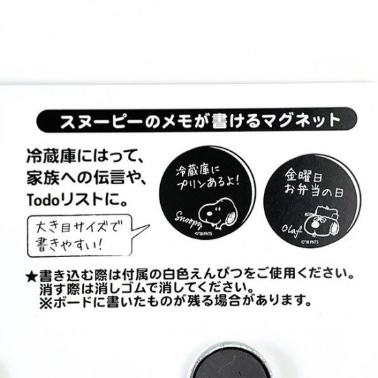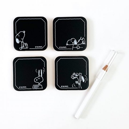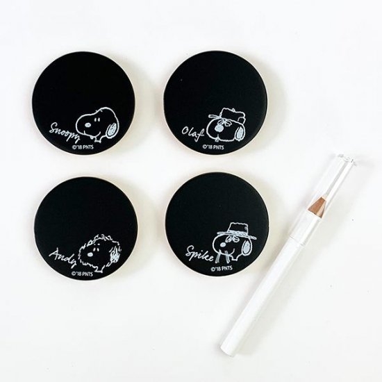 おはじき?いいえ、マグネットです。スヌーピーの黒板マグネットはメモが出来て消しゴムで消せる優れもの♪キッチンで大活躍!