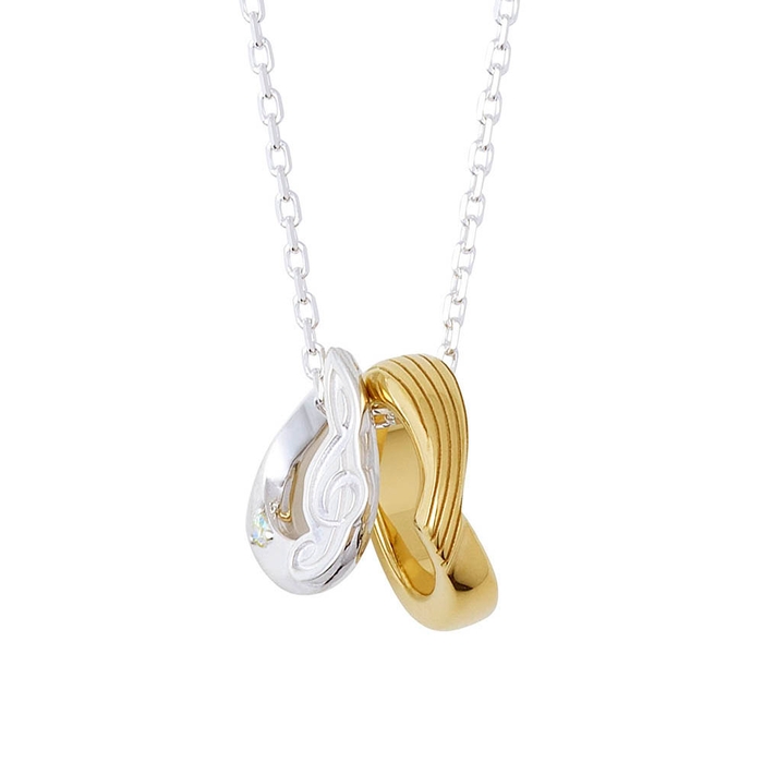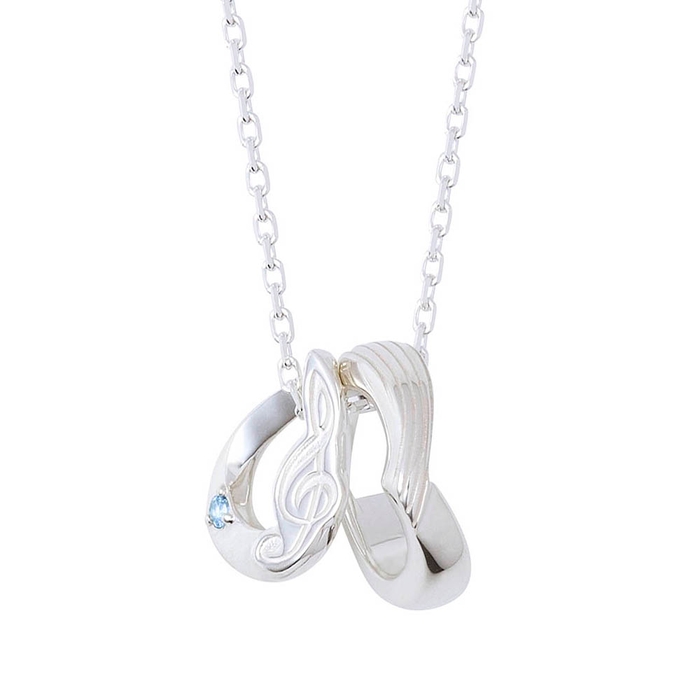 ト音記号パーツの表面にはイメージカラーストーンをセットし、V字パーツの表面には五線譜を取り込みました。内側にはさりげなく楽器アイコンを刻印しています。