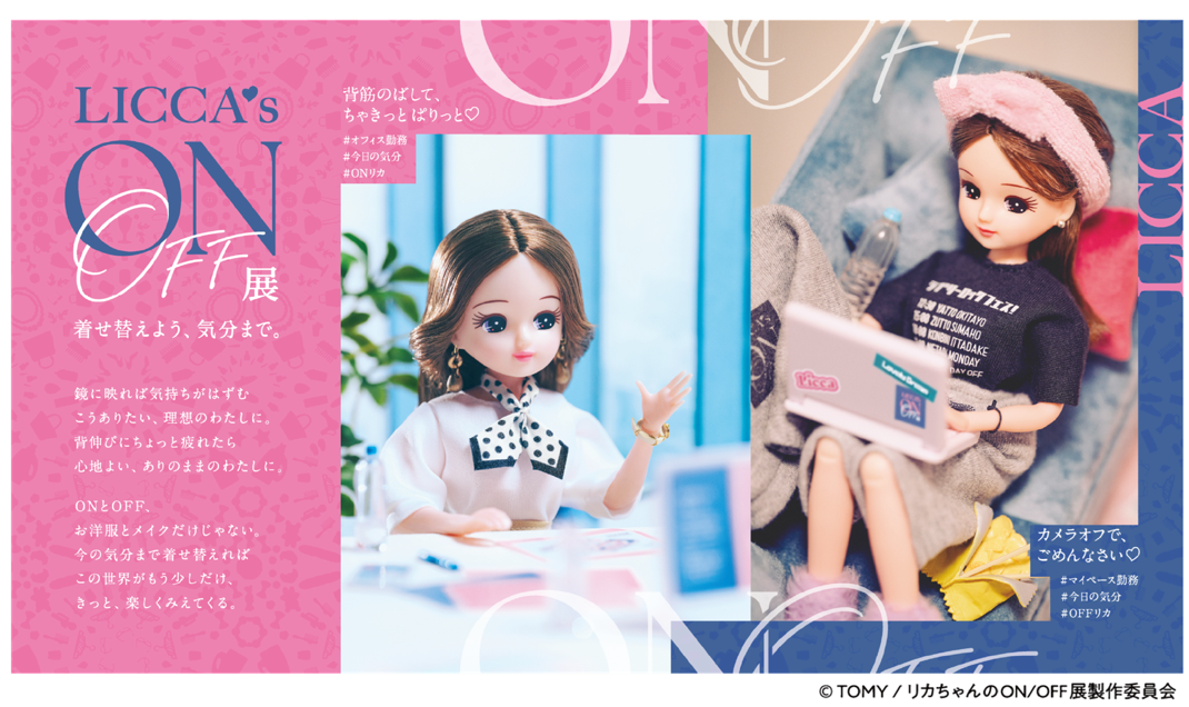 1967年の発売以来、世代を超えて愛され続ける「リカちゃん」。今ではリカちゃんとともに時代を歩んできた大人にも愛されるブランドとして人気を確立し、SNSを中心に「#リカ活(※1)」と呼ばれる大人のリカちゃん遊びが広がっています。本展では、ONとOFFを自由に切り替えながら“わたしらしい時間”を楽しむリカちゃんの姿を通じて、仕事もプライベートも大切にしながら生きる現代のライフスタイルを表現。OFFを楽しむからこそ、ONも頑張れる――そんなポジティブなメッセージを届けます。