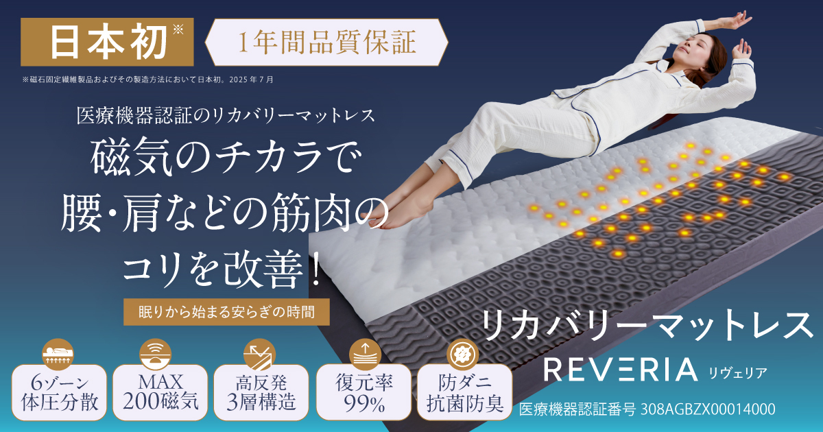 医療機器認証で血行促進と筋肉のコリを改善する リカバリーマットレス「REVERIA(リヴェリア)」が販売を開始