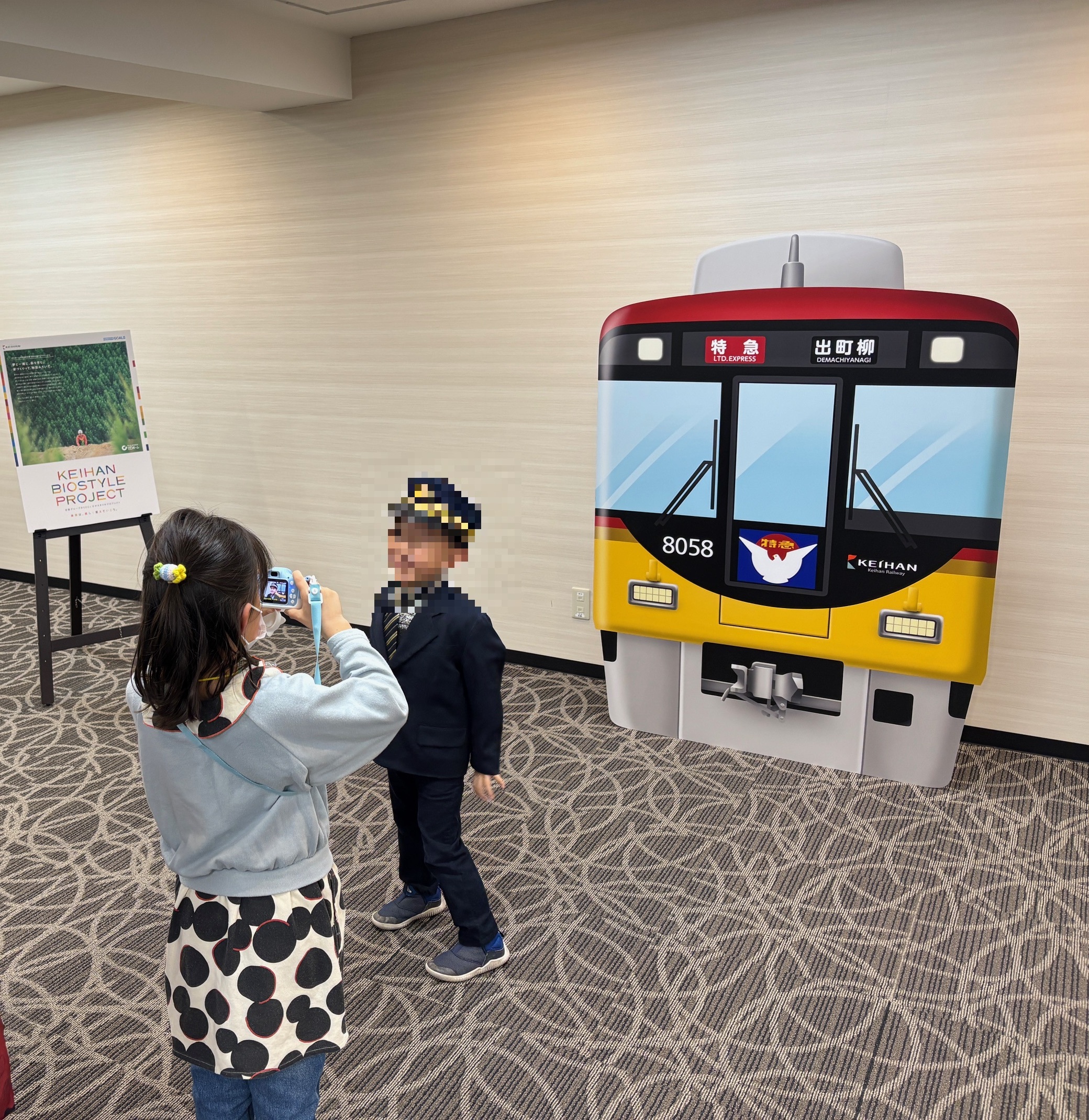 フォトコーナーをご用意。制服を着て8000系と一緒に写真撮影ができます!