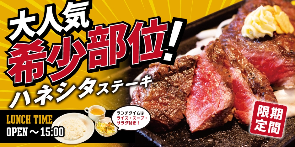 ・ハンバーグメニューや期間限定のイベントステーキ、