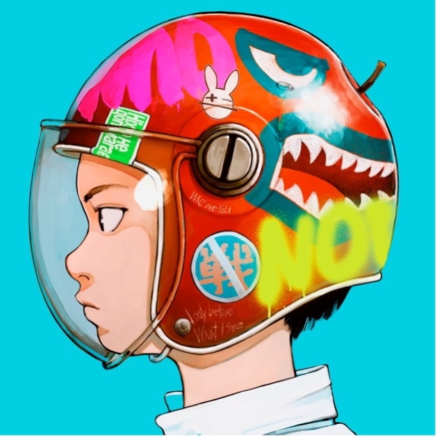 イラスト(特にデジタル作品)と現代美術作品の境界などそもそもないかのような意識のもと、しかし、大量消費されるイラストやその印刷技法に対する独自の解釈で現代美術作品を産み落とすことに成功。シルクスクリーン、ジークレー(デジタル版画)、浮世絵木版画。そしてハンドペインティングと多様な作品は全てがユニーク作品(浮世絵版画作品除く)。大量消費を前提にした技法であえてユニーク作品に限定することで、過去、商業品からの評価の日本文脈に一風を起こそうとしている。そこには絵柄・アウトプットの方法などスタイルのこだわりはなく、常にアップデートし続けている姿がある。昨今の都会的な女性キャラクターを描くアーティストとは一線を画すアプローチにチャレンジし続ける現代作家。最近の主な展示に2024年9月KIAF(ソウル/アートフェア)、5月one.small gallery(ボストン/個展)、3月571 Art Space(杭州/グループ展/)、2月Street Dreams Studios Tokyo(青山/個展)、Gallery Joyana(コートダジュール/グループ展)など。