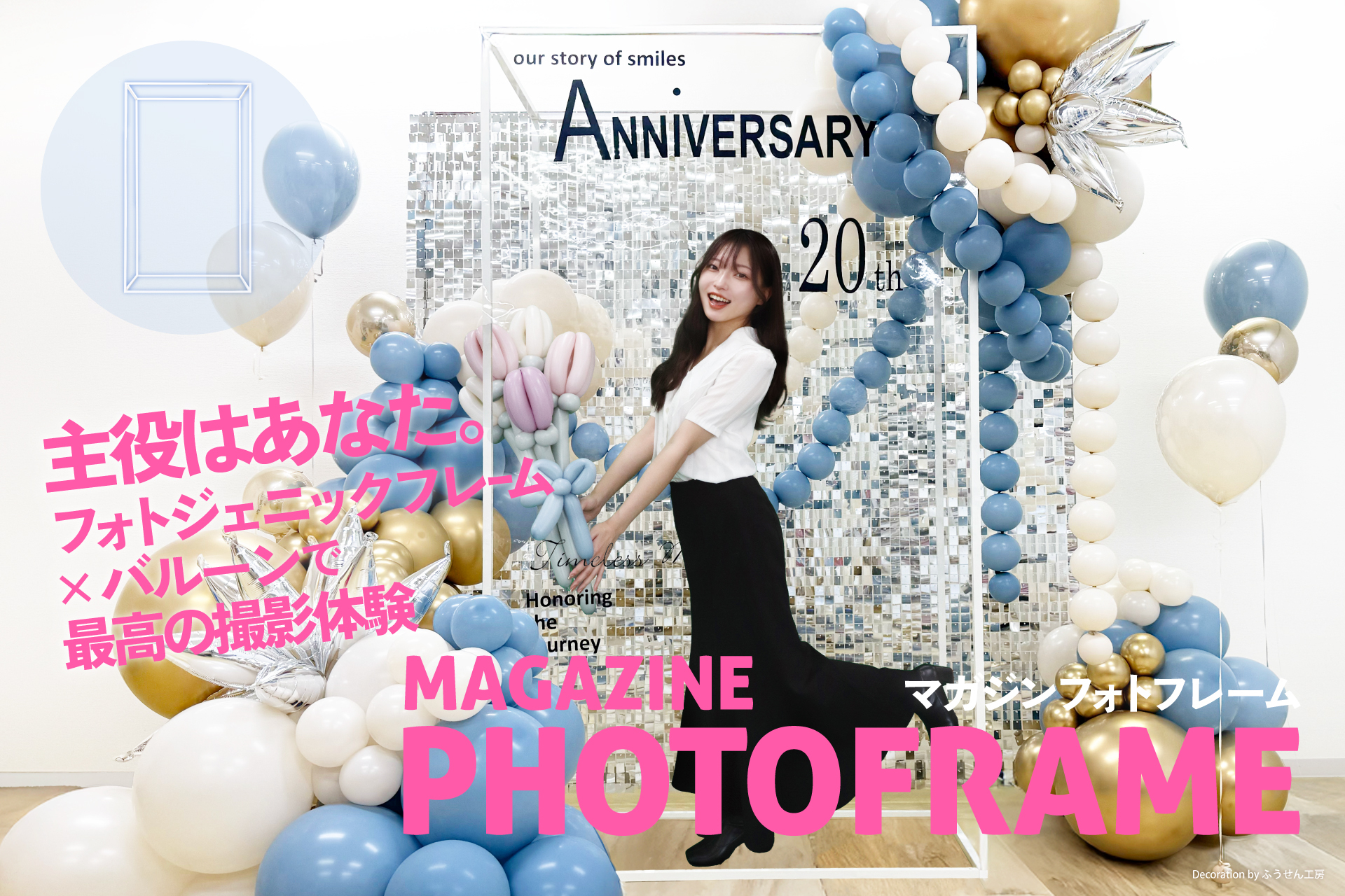 マガジンフォトフレームを使ったデコレーション施工可能なバルーン業者