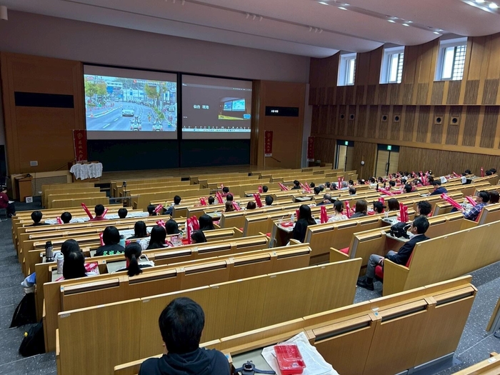 同日、天白キャンパス名城ホールでは全日本大学女子駅伝のパブリックビューイングが開催されました。会場には学生や教職員など約130名が集まり、スクリーンを通じて名城大学女子駅伝部の熱い走りに声援を送りました。