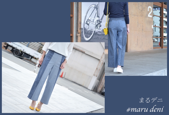 今回は春先のトレンドに合わせて“まるでデニム”のようなパンツ『まるデニ』を企画し、販売が決定しました。