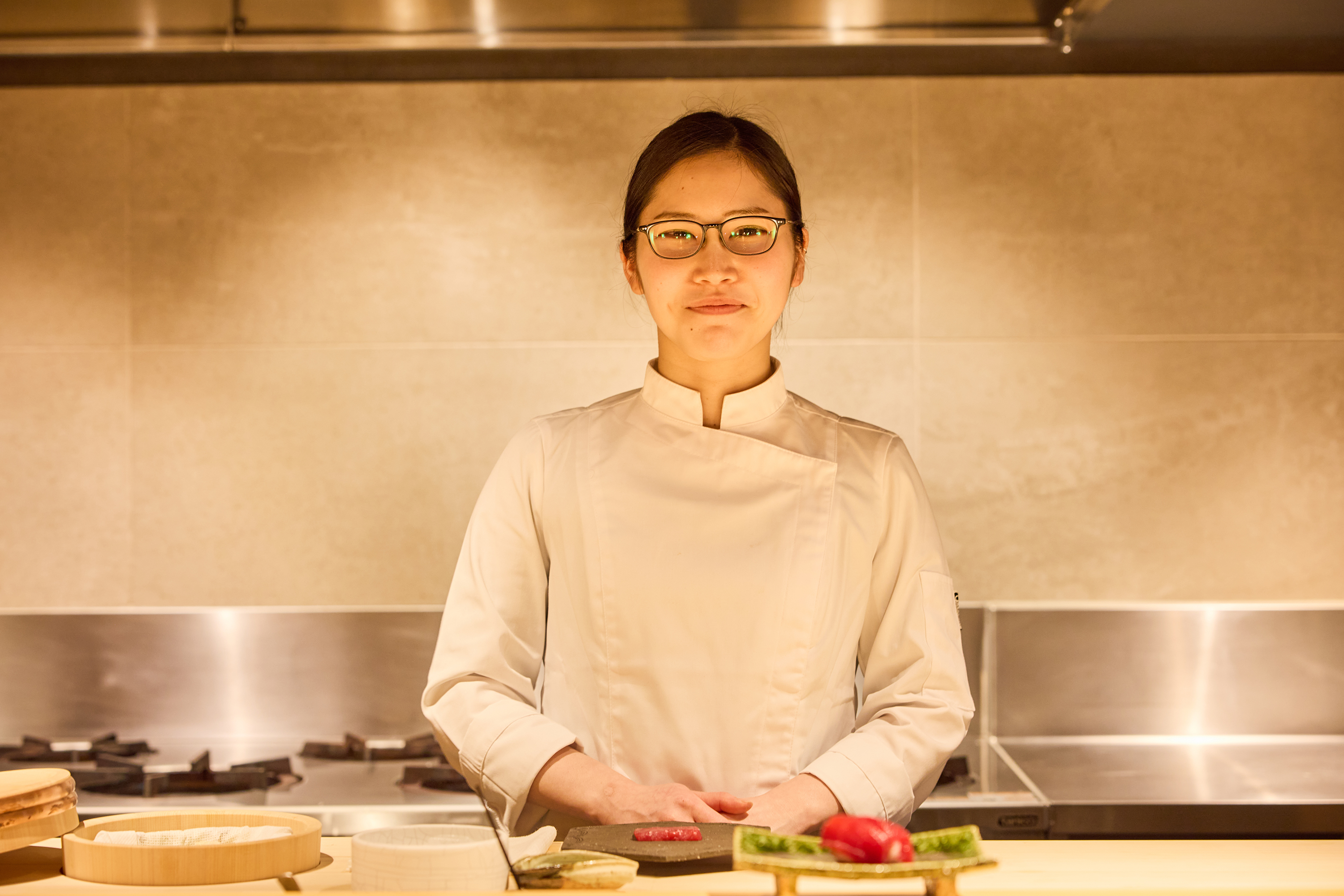 2019年、麻布十番の日本料理店「御料理 辻」にて研鑽を積み、繊細な日本料理の技法とコース構成力を習得。2022年には銀座の「鮨 むらやま」にて、素材の持ち味を最大限に引き出す鮨の技術を深化させるとともに、上質な空間に居る際の所作とおもてなしの技術を磨く。