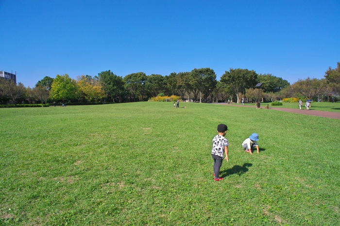 公園の中央部の広場を中心に、東側にはアカマツやコナラなどの明るい樹林地、西側にはバードサンクチュアリ、そのほか遊具広場、マイマイ池、ゲートボール場などがあります。通産省跡地を公園として整備する過程では、多くの市民からの「緑を基調とした公園づくりを」との声に応え、市民による植樹も行われました。春にはお花見を楽しめる小彼岸桜、初夏には香りのよいラベンダー花壇、秋には色とりどりに咲く小菊花壇など、ボランティア活動によって手入れされ、地域の皆様に親しまれています。
