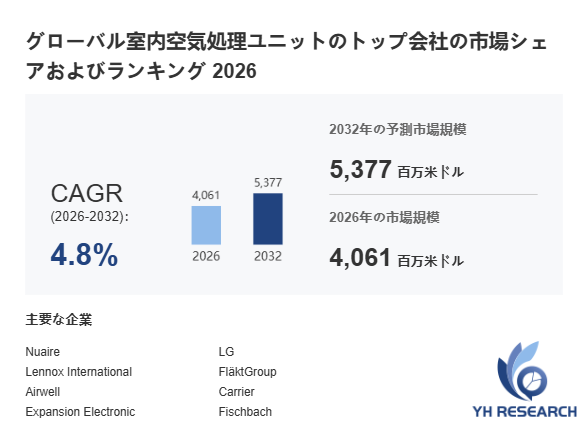 本記事は、YH Researchが発行したレポート「グローバル室内空気処理ユニットのトップ会社の市場シェアおよびランキング 2026」 を紹介しています。