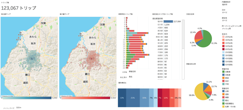 特に、希望線機能が実装されたことで、森(地域の移動の全体像)から木(メッシュ間のOD)が一貫して分析できるようになりました。