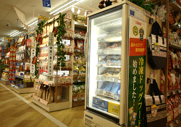 2階のノンフーズフロアでは、ペット用品の品ぞろえが増えました。いつでも出来立てのおいしさが味わえる冷凍ペットフードの取り扱いもございます。