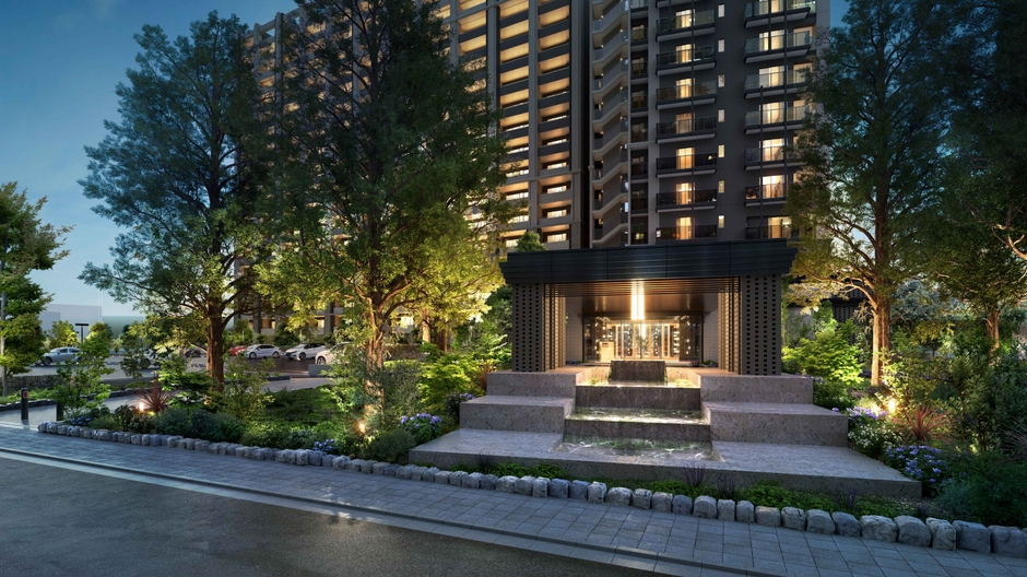 地上19階建、全253邸の「マスタープレイス」は、水盤を湛えたエントランスにつながるゆったりとしたアプローチが特徴的。エントランス奥の“コートヤード”には、キッズスペースやワーキングスペース等が設置されており、その中心には自然光に照らされたオリーブの樹がガラス張りの中庭に佇んでいるのが印象的な空間です。その他パーティールームやフロントサービスなども併設しています。