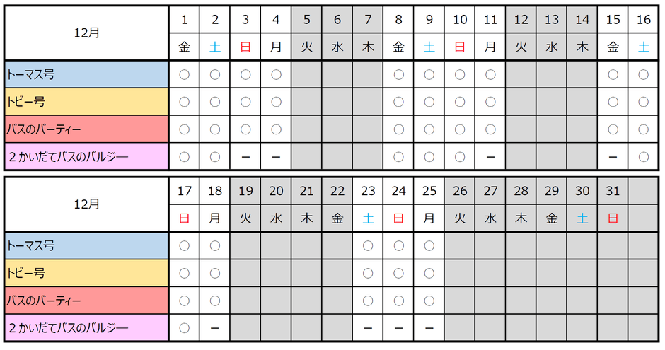 運転日 :2023(令和5)年12月1日(金)~12月25日(月)