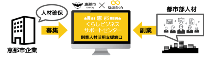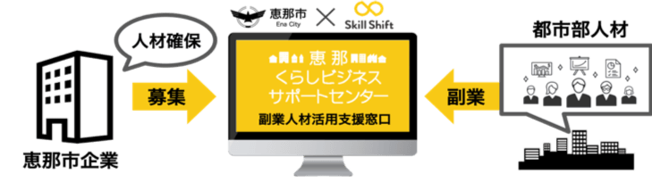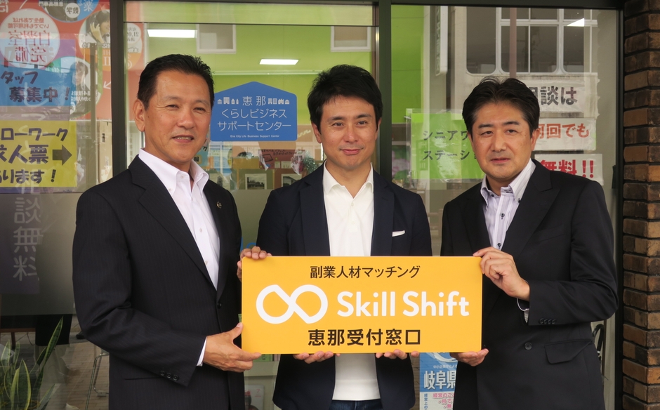 これにより、全国初となる副業マッチング支援窓口「『SkillShift』恵那受付窓口」を開設。市内企業と副業人材のマッチング支援を開始いたします。