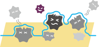 【ポリヘキサメチレンビグアナイド】は、菌を包み込み無酸素状態にして除菌します。