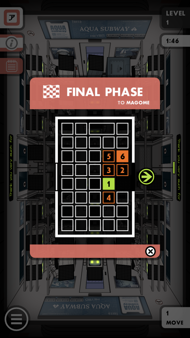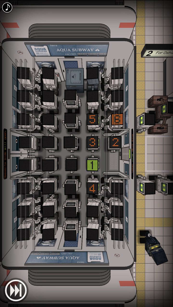 地下鉄車両が走行している間に乗客を動かして、頭に数字が表示してある乗客を、次の駅で数字順に降りられるような配置にできたら区間クリアです。各路線の終点を目指してください。