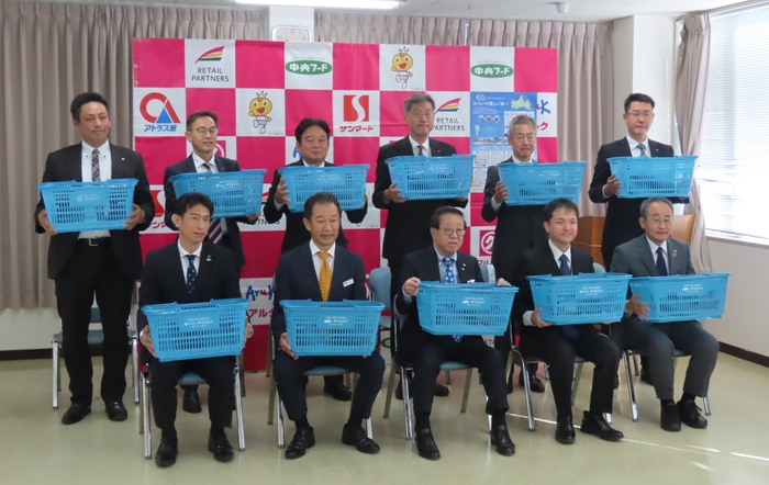 株式会社リテールパートナーズの事業会社である株式会社丸久(本社:防府/代表取締役社長田中康男)は、2021年より開始しました当アップサイクルプロジェクトにより、山口県長門市大浦海岸等に漂着した海洋プラスチックごみを原材料の一部に使用した買い物かごを製作し、昨年度までに自社店舗や道の駅に12,700個導入しております。2025年度は、3,000個の買い物かごを製作し、新たに10店舗に導入、累計34ヶ所への導入となりました。これに併せ、以下のとおり、買い物かごの導入セレモニーを開催いたしましたので、お知らせいたします。
