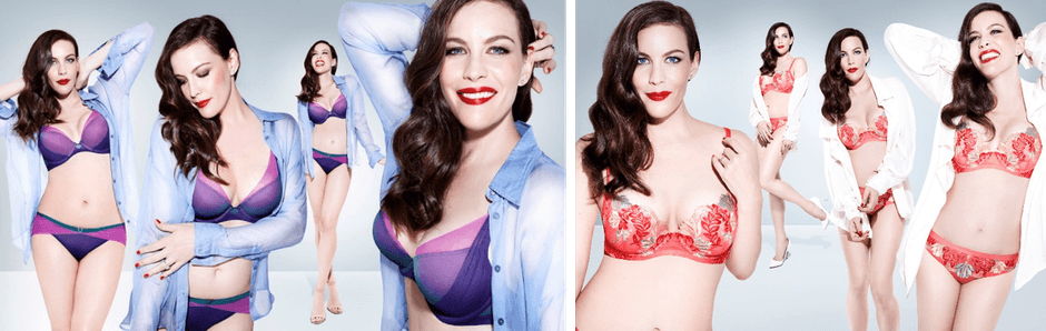 ▽(左)深いVラインで谷間を美しく(右)裏表のカラーコントラスト