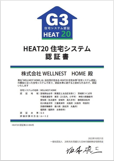 全国初!WELLNEST HOME「HEAT20住宅システム認証」 最高水準グレードG3を全国複数都府県で同時取得!