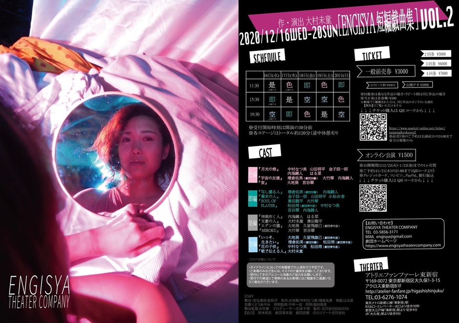 劇団運営を行なっている合同会社ENGISYA(所在地:東京都足立区、劇団主宰:大村未童 以下 ENGISYA)は、舞台「ENGISYA短編戯曲集vol.2」を2020年12月16日(水)~20日(日)に東京・アトリエファンファーレ東新宿にて開催いたします。