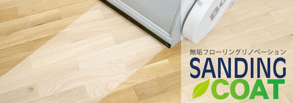 「サンディングコート」は、同社が提供する床再生サービスです。既存の床表面を研磨(サンディング)し、その上からコーティングを施すことで、美観と耐久性を回復させるものになっています。