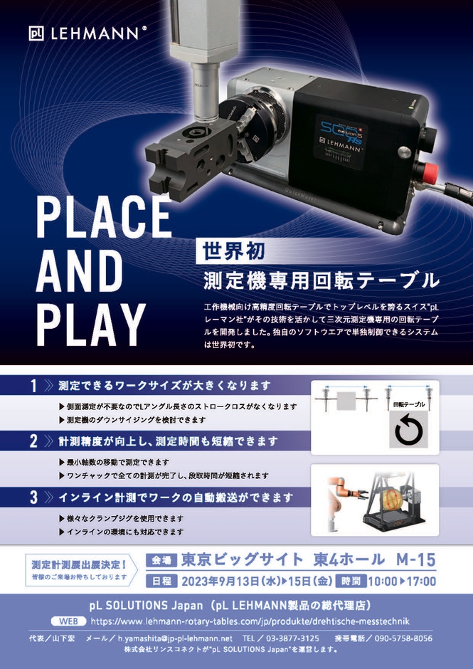 pL LEHMANN製品の販売を手がける“pL SOLUTIONS Japan”(運営:株式会社リンスコネクト、本社:東京江戸川区、代表取締役社長:山下 宏)は、世界初※となる測定機用回転テーブルを2023年9月13日に販売を開始いたします。※当社調べ