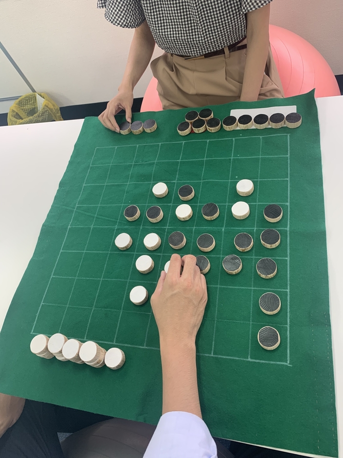 2020年は新型コロナウイルスの影響を鑑み、Stay Homeグッズを作成。手すりの形状を活かしながら、在宅が求められるこの時期にふさわしく、ご自宅での時間を有意義に過ごしていただけるよう、レクリエーションで定番の「リバーシ」を作成いたしました。ご自宅でお孫さんやご家族と過ごす時間を楽しんで頂き、また、頭や指先のトレーニングにも使えるグッズです。