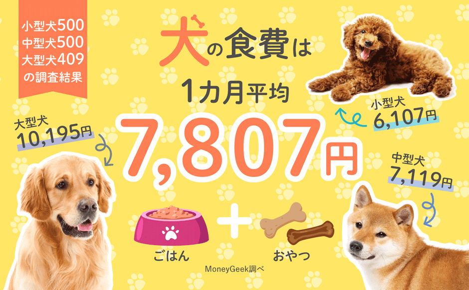 犬の食費について飼い主1,409人に調査した結果を公開! 月の平均は7,807円で、大型犬は1万円超え!