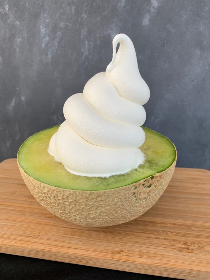 「浜松ソフトクリームスタンド&」から、 クラウンメロンを丸ごと半分使用した「まるごとメロンソフト」