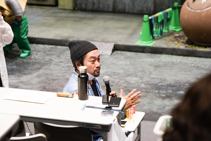 休憩時間を使って市民参加者に話を聞いてみた。話の途中でギターも披露するアリソン・オパオンはフィリピン出身。普段は仕事の傍らシンガーソングライターとしても活躍している。暮らしているのは鶴見だというが、横浜以上にカオスな街だ。前作に引き続いての出演で「今回もタニノさんが参加者を探していると聞いたもので」参加を決めたという。今回は自作の曲を歌うチャンスもあると嬉しそうに話してくれた。