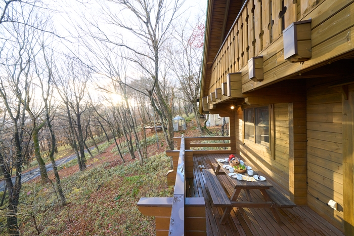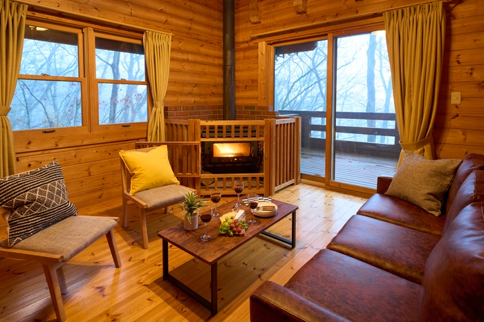 薪ストーブとウッドテラスのある本格ログハウスを満喫 「スイートヴィラ 那須高原フィンランドログ」12/9に開業