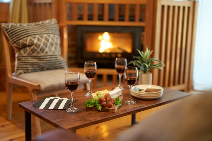 が設置されており、冬季にはぬくもりと北欧の別荘らしい雰囲気を演出します。