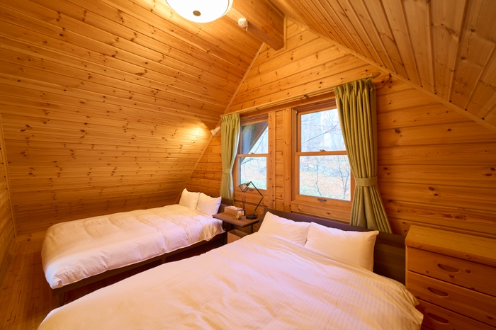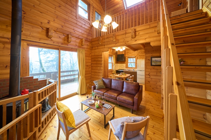 この度新たに開業する「スイートヴィラ 那須高原フィンランドログ」は「リソルステイ」として那須エリアで5施設目の開業となります。標高900m付近の自然豊かな那須高原の別荘地に佇む本施設は、高品質なフィンランド産の木材を使用した本格的なログハウスで、室内は、吹き抜けやリビングを見下ろすロフトなど、随所に北欧の別荘らしい雰囲気が演出されています。