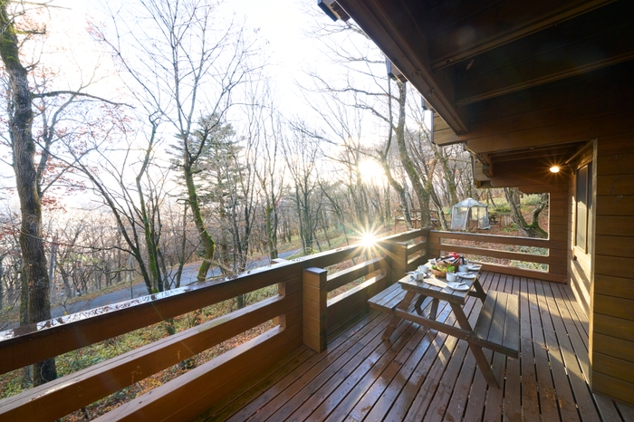 ウッドテラスに出て自然の景色を眺めながら楽しむコーヒーは格別です。
