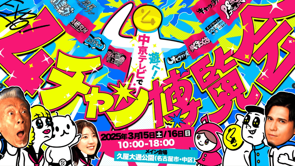 中京テレビ放送株式会社(所在地:愛知県名古屋市、代表取締役社長:伊豫田 祐司)は2025年3月15日(土)~16日(日)の2日、愛知県名古屋市にある久屋大通公園の4エリアで「中京テレビで遊べ!4チャン博覧会」を開催いたします。