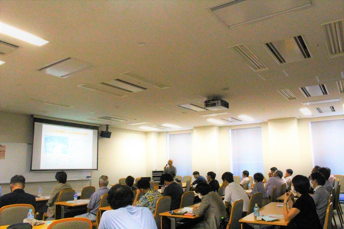 大学院総合学術研究科の全教員と大学院生が一堂に会し、学問分野の違いを超えて互いに議論して交流を深め合う「秋季総合コアプログラム」が9月14日、天白キャンパスのタワー75で開催され、元副学長の原彰名誉教授が「矢田・庄内川をきれいにする会50年の歩み―泳げない川・魚が食べられない川」と題して特別講演しました。