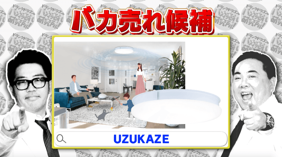 “そんなのあるわけないだろ!!” 空気清浄付き 羽根の無いシーリングファンライト「UZUAKZE」が 『ドランクドラゴンのバカ売れ研究所』にて紹介!
