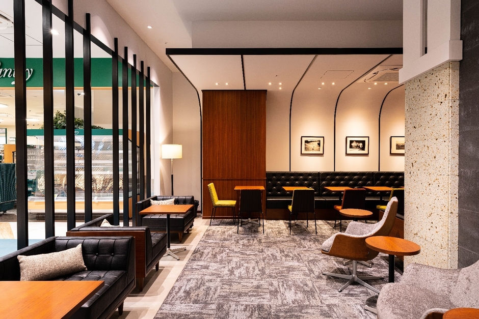(1)オーセンティックゾーン・・・大きめなソファや、壁面へ設けられたベンチにて、ゆったりとおくつろぎいただける、上島珈琲店のコンセプトを表現した上質なエリアです。