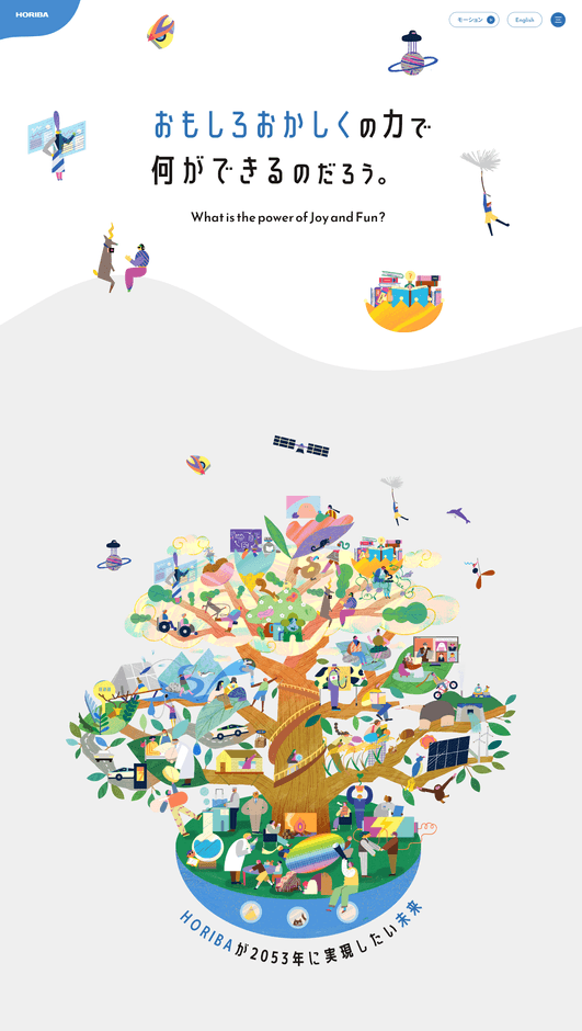 特設サイトでは、私たちがめざす未来「Our Future」について、社是「おもしろおかしく」を軸に丁寧に紐解きながら解説するとともに、HORIBAが提供する未来につながるソリューションをさまざまな切り口から取り上げ、イラストや動画を通じてわかりやすくお伝えしています。