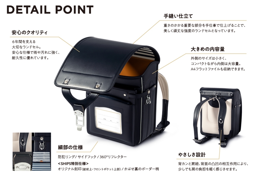2020年春にご入学を迎える皆様に向けて、品質の良さと使いやすいデザインが人気の老舗ランドセルメーカー「大峽製鞄(おおばせいほう)」とSHIPS KIDSがコラボレーションしたオリジナルランドセルの取り扱いをスタートいたします。