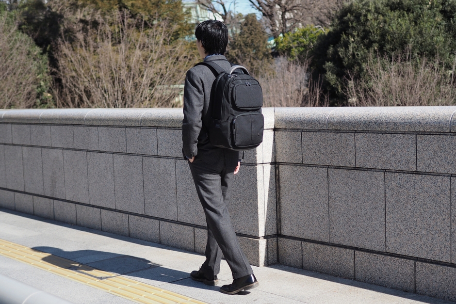 普段のビジネスシーンから出張、カジュアルな場まで合わせられるシンプルなデザインかつ大容量収納可能なバックパック。